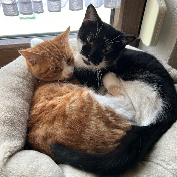 Die 2 jungen Katerchen Zedric (rot-weiß) und Zian sind neugierig und …