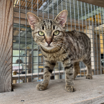 Der getigerte Jungkater Sam gehört zur Gruppe: noch schüchtern und zurückhaltend – aber bestimmt bald schon ein toller Schmuser! Er ist neugierig, kratzt und beißt nicht, sondern entzieht sich einfach der Situation, wenn es ihm zuviel wird. Seine beiden Geschwister sind bereits vermittelt, sodass wir für Sam ein neues Zuhause, am Liebsten als Zweitkatze, mit Freigang suchen. Das schöne Leben fängt für ihn erst so richtig an. Hierfür fehlen nur noch die passenden Menschen.
