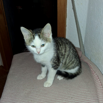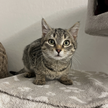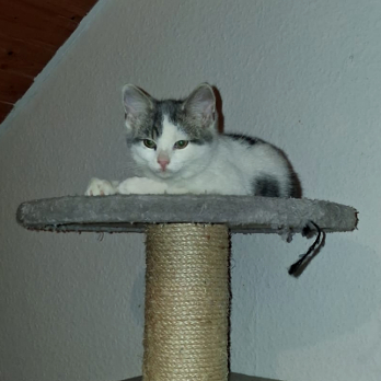 Shorty ist am 30.05.2025 geboren und wohnt mit Shadow und Schmurmel in einem Zimmer. Sie sind anfangs etwas schüchtern, lassen sich aber mit Leckerlis bestechen und dann auch gerne streicheln.
