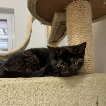 Carla (dreifarbig) und Jule sind Geschwister, geboren Ende September 2025. Sie sind Menschen gegenüber noch zurückhaltend. Die Beiden suchen zusammen ein Zuhause mit späterem Freigang bei Menschen mit ein wenig Geduld. Mehr Infos unter 07948 / 2407