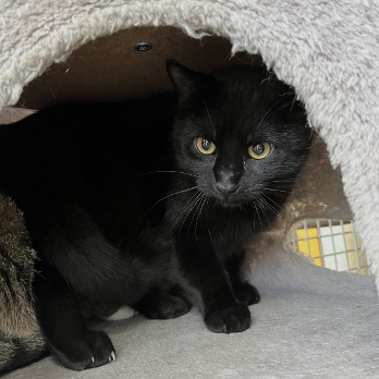 Shadow ist am 30.05.2025 geboren und wohnt mit Shorty und Schmurmel in einem Zimmer. Sie sind anfangs etwas schüchtern, lassen sich aber mit Leckerlis bestechen und dann auch gerne streicheln.
