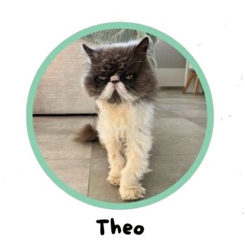 Völlig verfilzt, verdreckt und mit Zecken übersät. Zu dieser Zeit wog er kaum 3 kg und musste sich erstmal erholen. Es folgte eine dringend benötigte Zahn-OP. Beim Röntgen wurde eine Spondylose festgestellt. Theo’s Rasse (Perser) zählt zu den Qualzuchten und auch er ist ein Paradebeispiel: